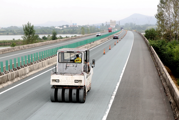 2018年高遠公司在湖北武荊高速進行KF-1抗滑霧封層施工